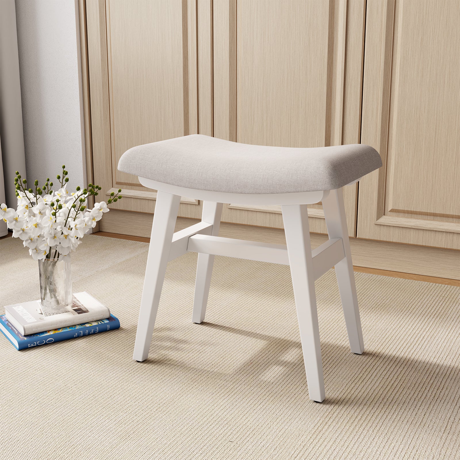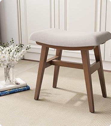 - 【Premium Quality Material】The Vanity Stool Chair is made from 100% FAS grade rubberwood that is finely sanded and painted to ensure a smooth, burr-free surface. The I-beam construction adds sturdiness and stability to withstand years of use.