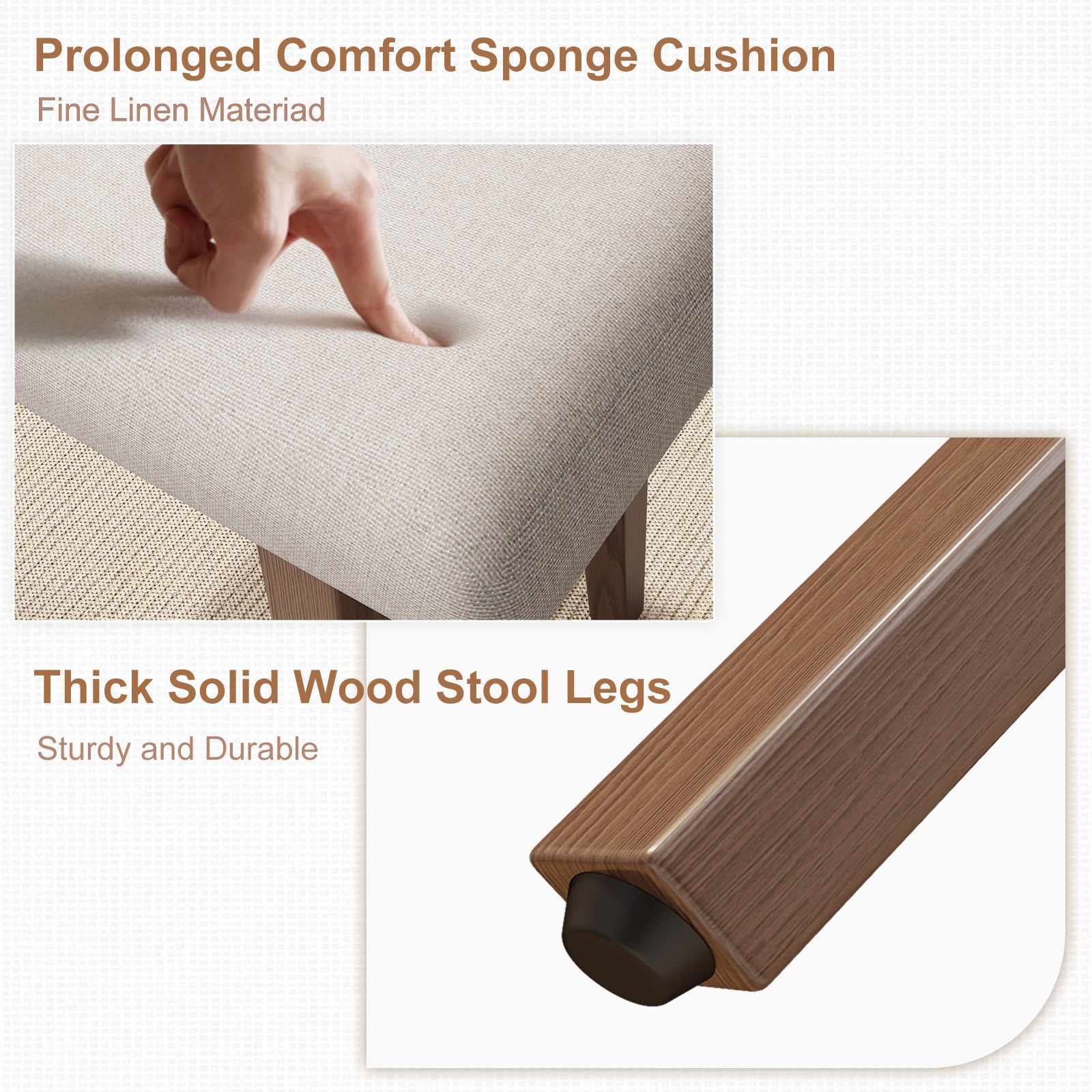 - 【Comfortable Seat】The linen fabric is breathable and comfortable. 1.7inch thick cushion is filled with high-density sponge, not easy to collapse. The extra wide concave bench top fits your body curvature much better and relieves fatigue during long periods of sitting.