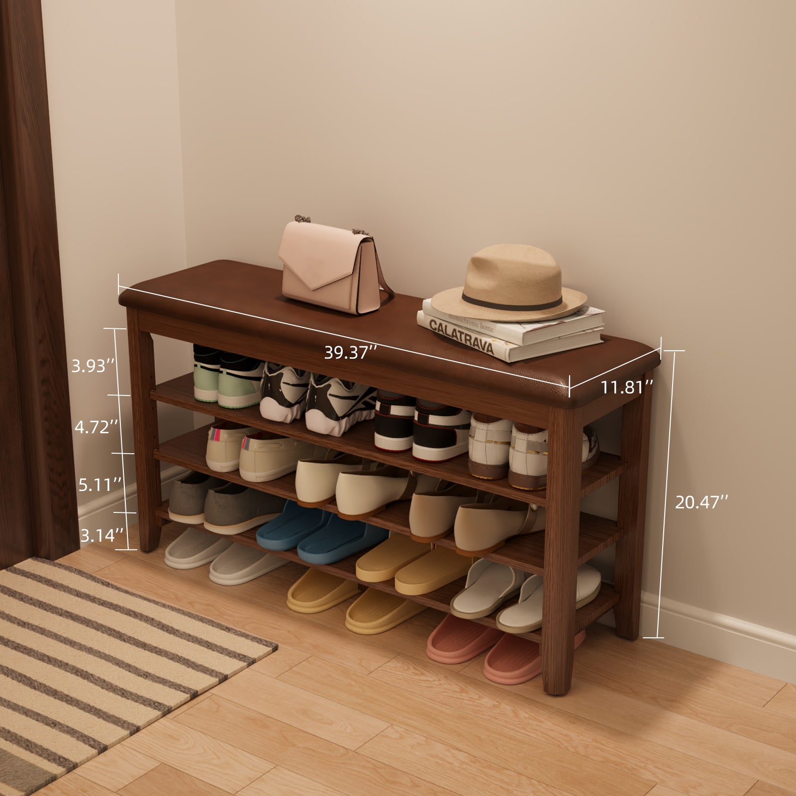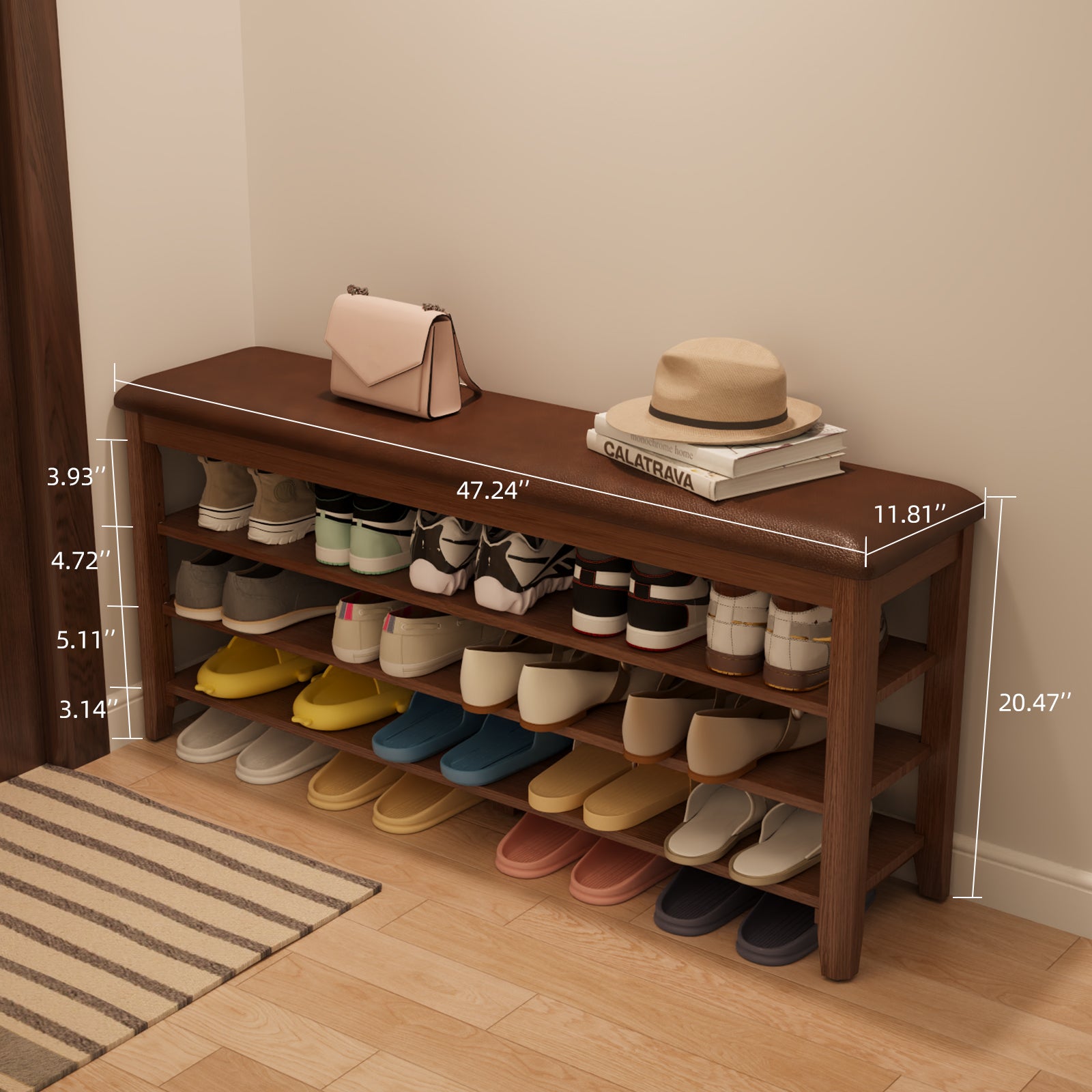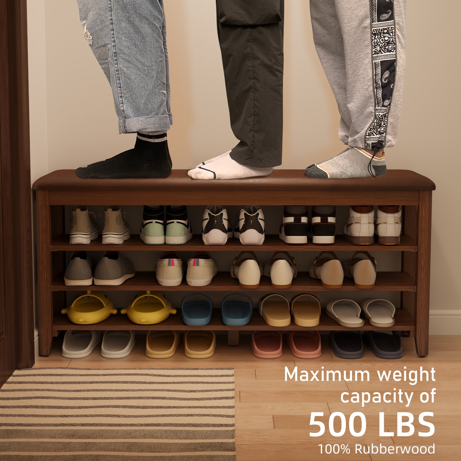 - Product Specification: 31.5"L*11.81"W*20.47"H. This wooden shoe bench features a 100% rubberwood frame, padded seat and sturdy legs that ensure stability . With a maximum weight capacity of 500 lbs, it can be placed in entrances, hallways and bathrooms.