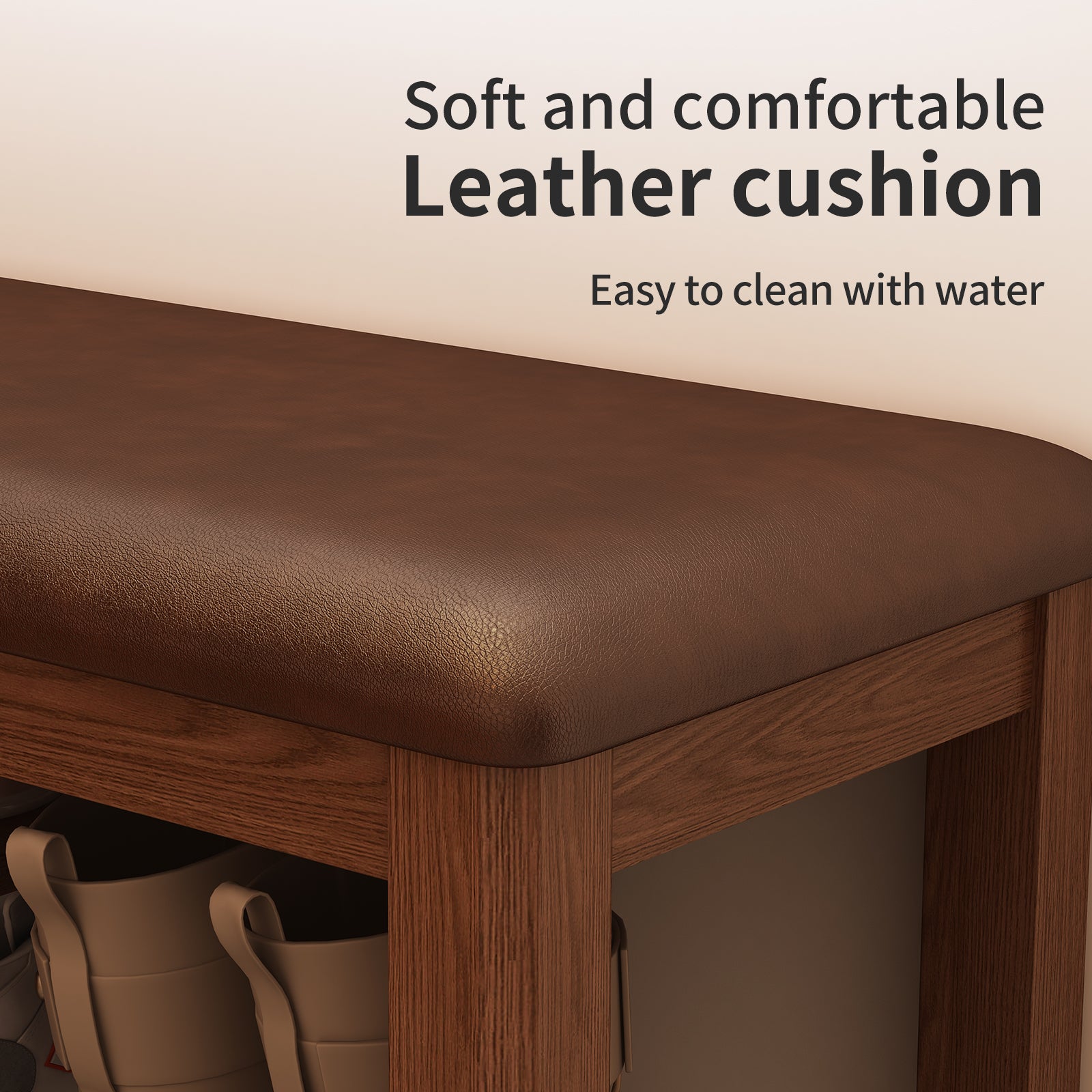 - Leather Cushion: The shoe storage bench features a premium PU leather surface that has undergone rigorous testing, including a 4,000-test abrasion resistance. It is flake, fade, and water resistant and provides a luxurious and comfortable seating experience when changing shoes.