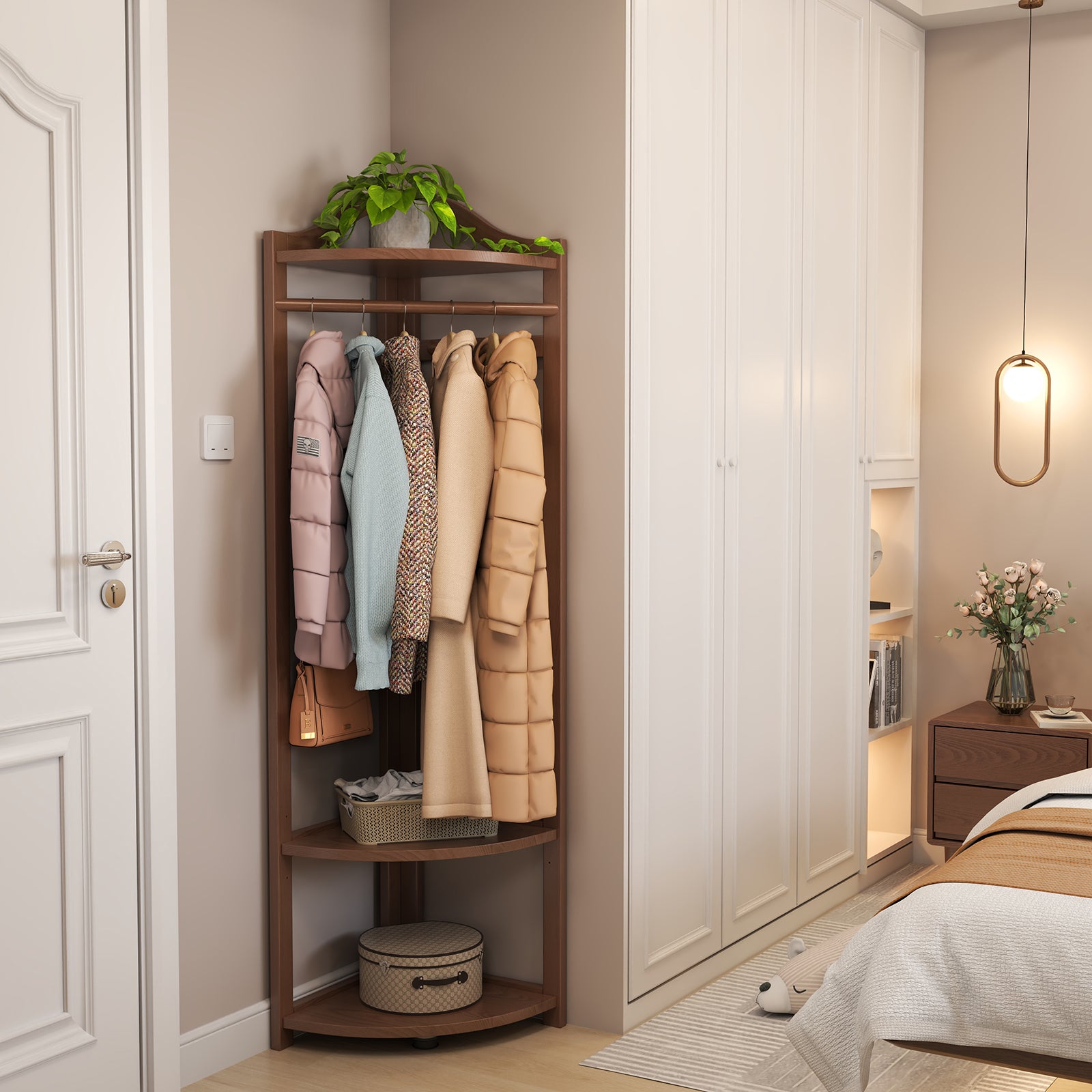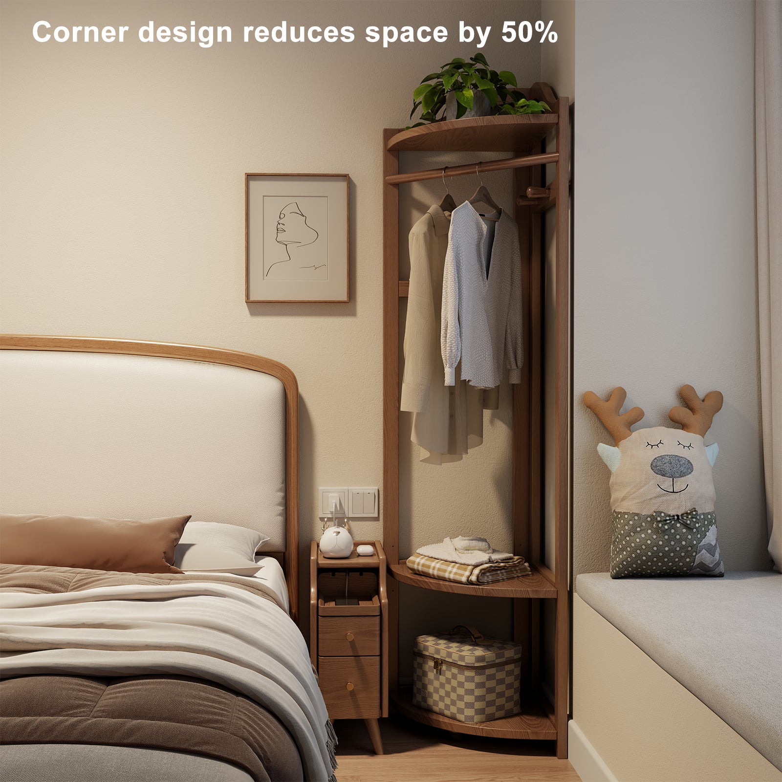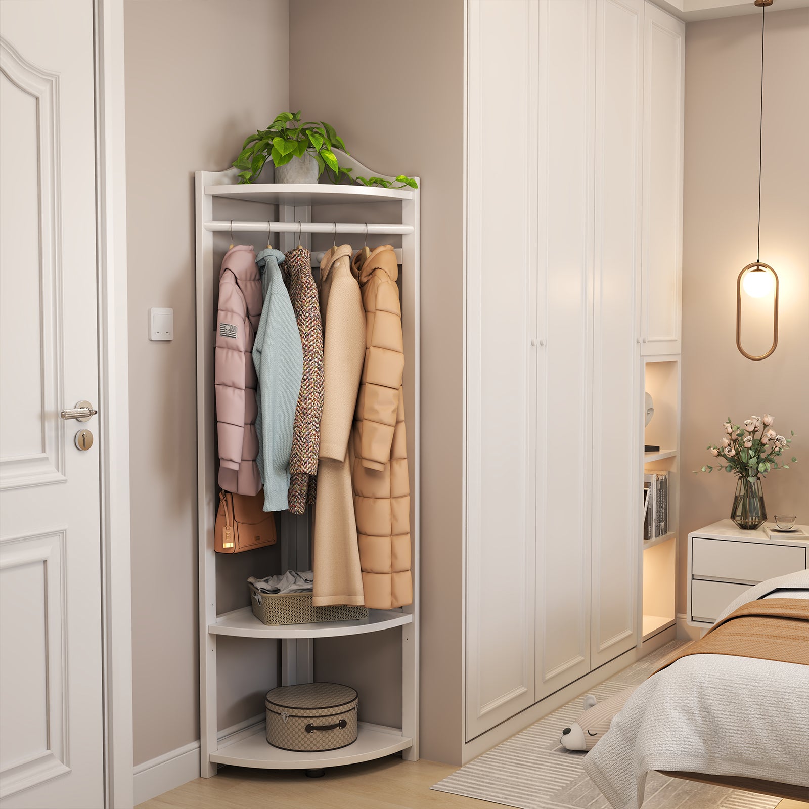- CORNER DESIGN: With a footprint of only 0.16 square meters, the corner clothes rack can store a week's worth of clothes, shoes, hats, bags and more, allowing you to make the most of every corner space!