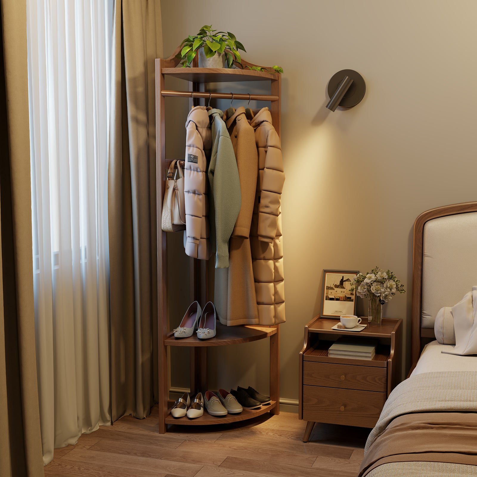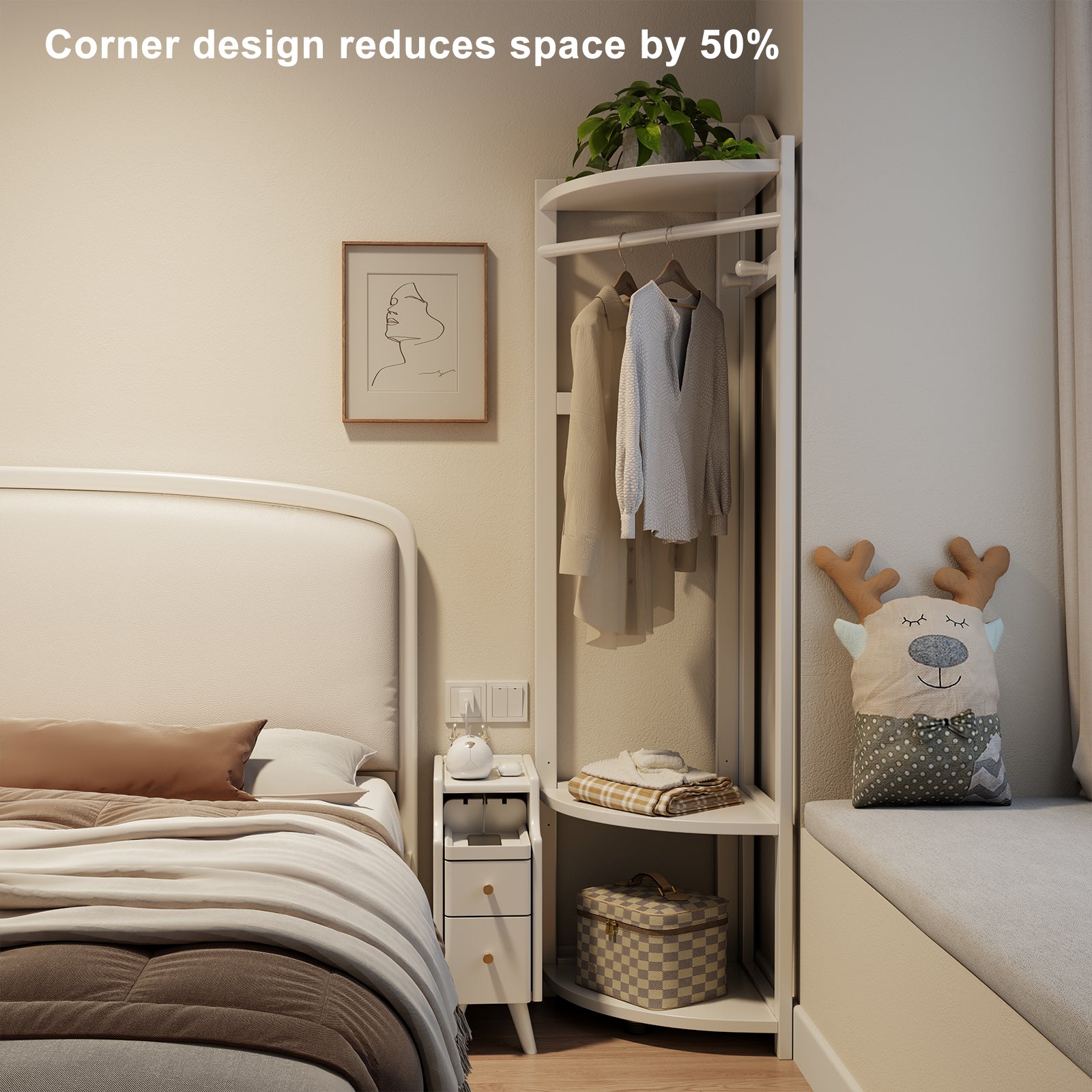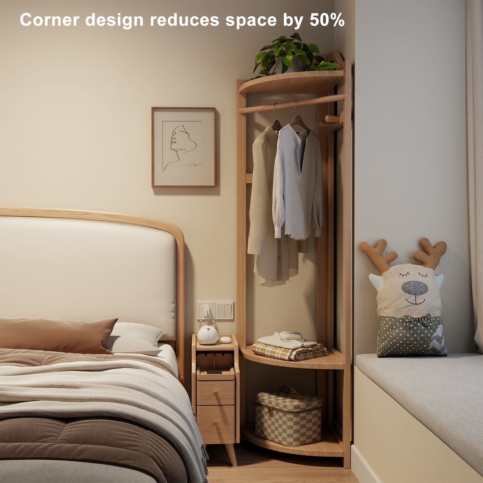 - CORNER DESIGN: With a footprint of only 0.16 square meters, the corner clothes rack can store a week's worth of clothes, shoes, hats, bags and more, allowing you to make the most of every corner space!