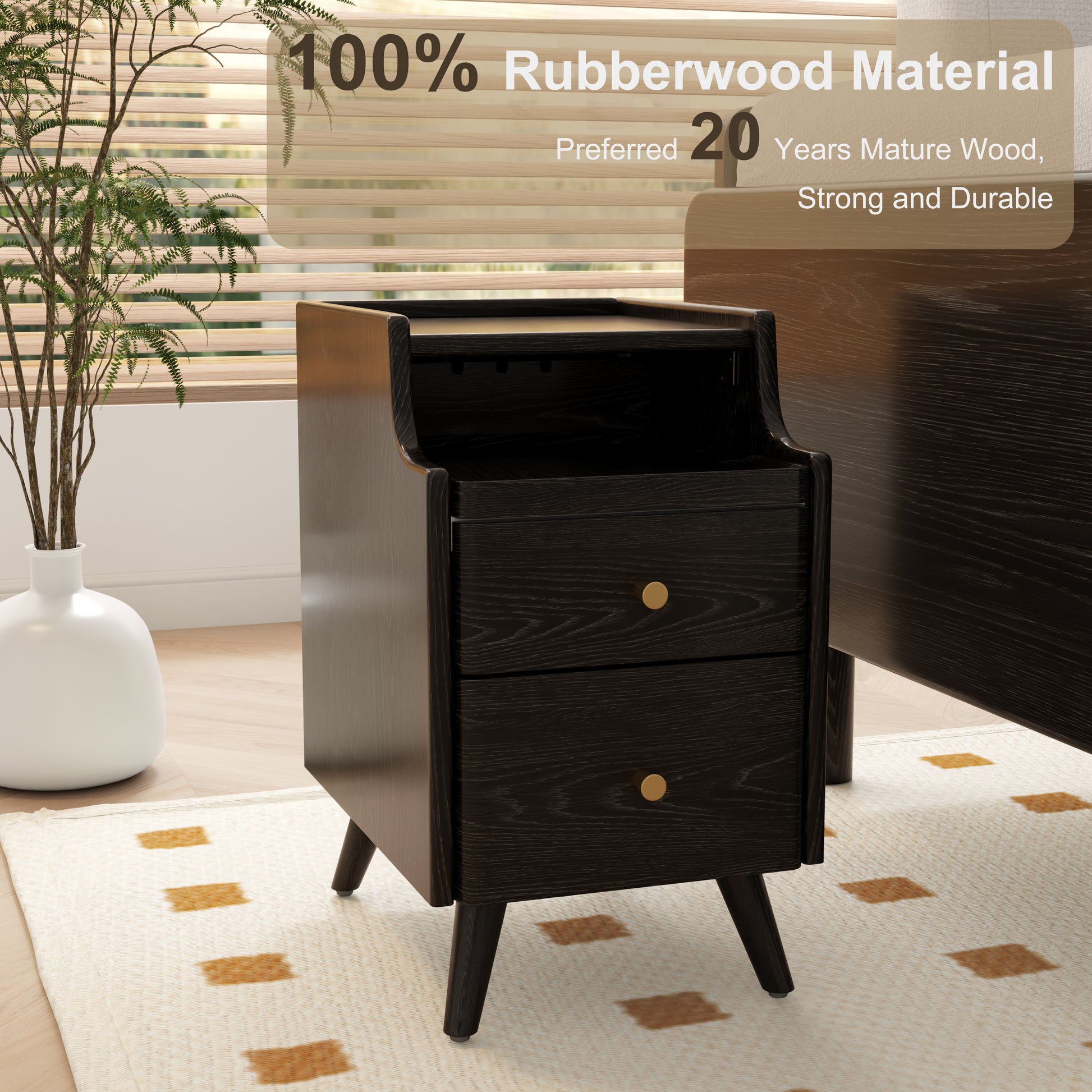 - Sturdy and durable: The wood nightstand is transported in a complete package to ensure that the structure is more stable and does not shake. Choose rubber wood material with higher density, which is not easy to crack and loosen. Thick tapered cabinet leg design can withstand higher loads.