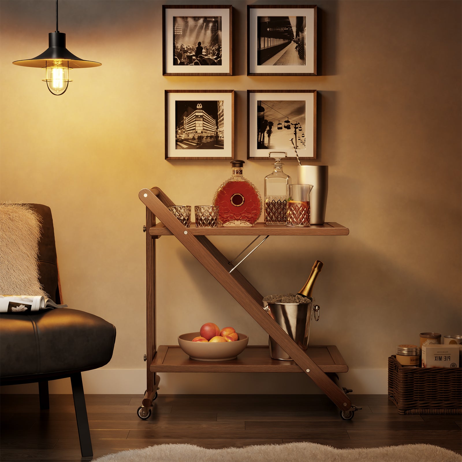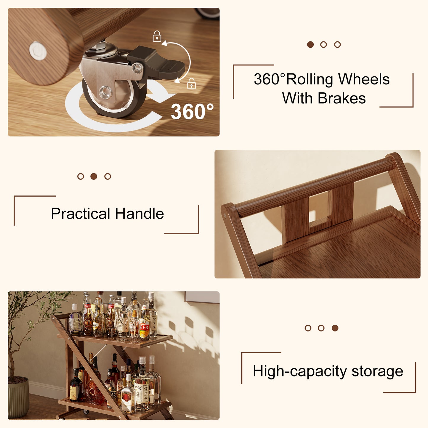 - 【Folding Design】:One of the outstanding features of our bar cart is its folding design, which allows you to fold carts with wheels up to save space when not in use