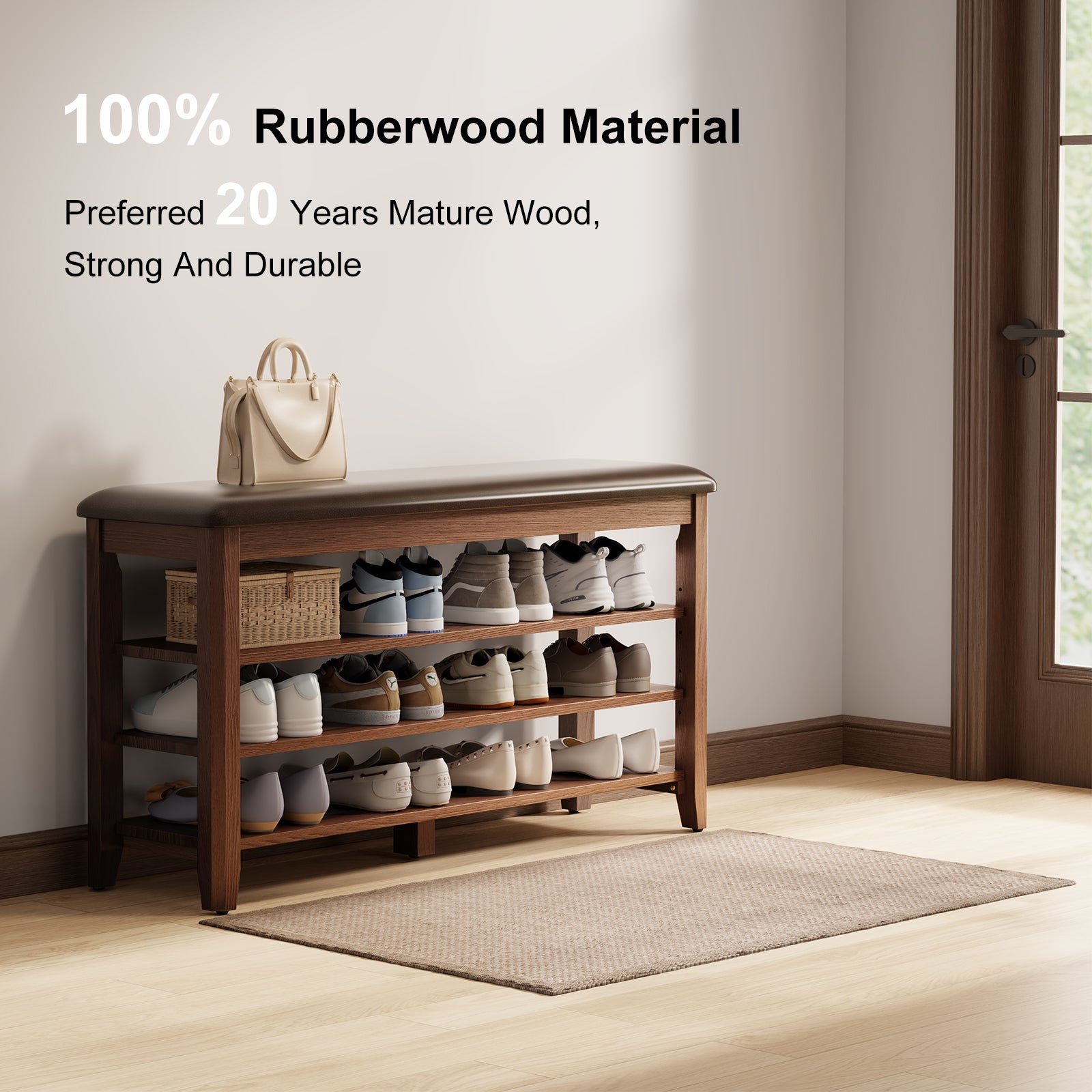 - This wooden shoe bench features a 100% rubberwood frame, padded seat and sturdy legs that ensure stability . With a maximum weight capacity of 500 lbs, it can be placed in entrances, hallways and bathrooms.