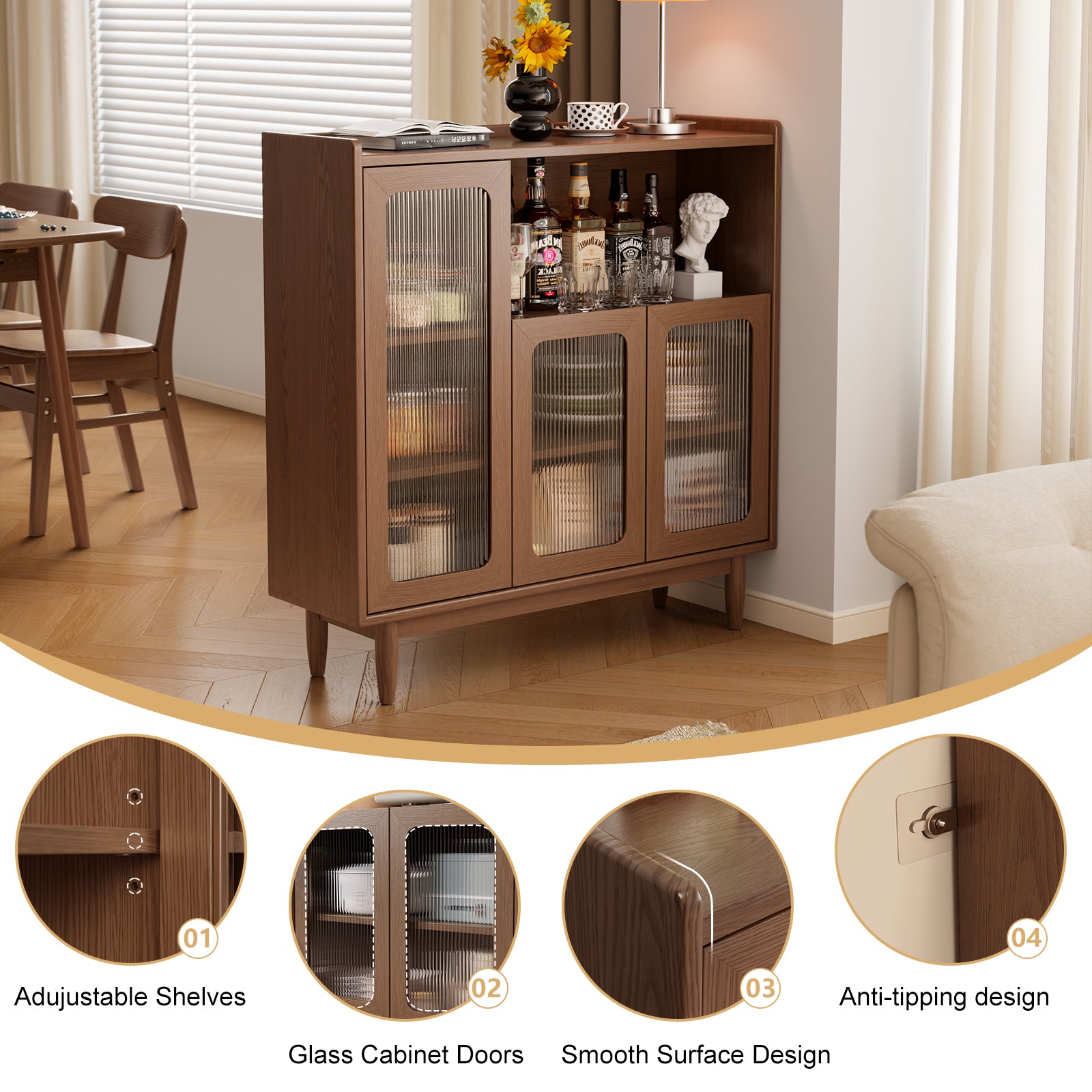 - Sideboard with Adjustable Shelves: Two side adjustable shelves in right with which you can be adjusted to 3 different heights according to the size of the items you want to store,You can adjust the appropriate position for placement according to the different heights of the products